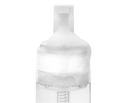 Dispense two pumps of the cleansing mousse and work on the damp face, then rinse off with water.